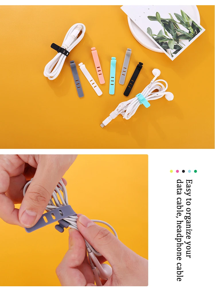10PC Silicone Cable Strap Clips Wire Organizer Data Cable Reusable Cable Tie 3 Holes Beam Line Cord Winder Holder Keeper Manager